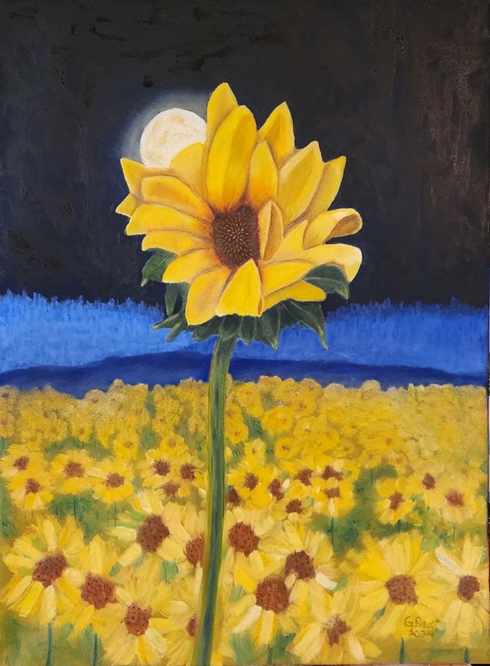 I made this for my daughter, Liberty. She loves sunflowers, and I thought it would be unique to do the sunflower painting, but with a night sky instead of doing it during the day.